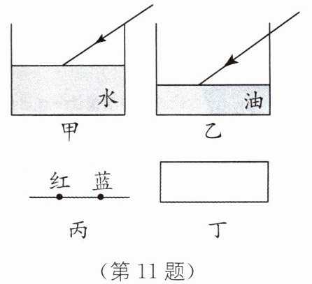 11. 中考新考法 设计探究性实验 (2024·苏州工业园区期中)如图甲所示,小明在探究光折射现象时,将一束入射角为50°的光线斜射入杯中,在杯底形成光斑,然后逐渐往杯中加水,观察杯底光斑的位置变化.他对实验中光偏折程度的差异产生了兴趣.为了定量反映这种差异,他将“折射角与入射角的比值”定义为“偏折比”.