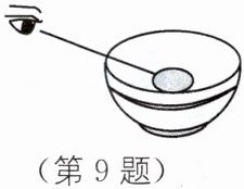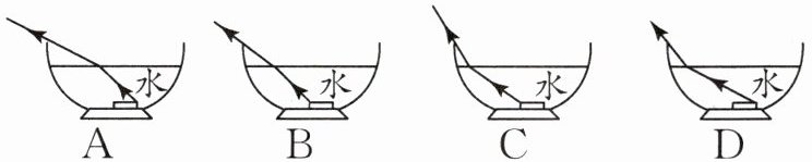 9. 教材 P64 图 3-6·变式 实验课上,小华将一枚一元硬币放到碗的底部,然后向后退到恰好看不到硬币的位置,如图所示,小明向碗内缓缓注水,直到小华恰好再次看到完整的硬币为止,再次看到完整硬币的光路是(