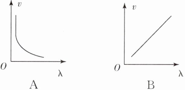 (5)在同一种物质中,不同光的传播速度v和它的波长λ成正比,图像如题图戊中B所示.