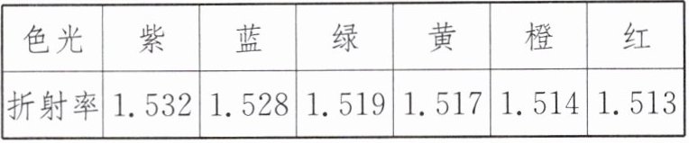不同波长的光在真空中的传播速度c相同,都为$3×10^8m/s,$光在真空中的传播速度c大于光在任何其他介质中的传播速度v.折射率η与光在某种介质中的传播速度v的关系是η= c/v,所以能够得出结论:不同波长的光,在同一种物质中传播速度不一样.