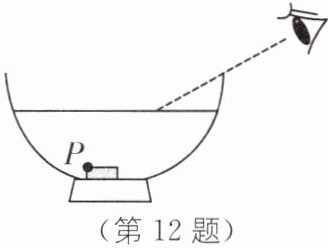 12. 教材P64图3-6·变式 (2024·扬州中考)如图所示,向碗中加水至图示位置,请画出人眼刚好看到硬币上P点的光路图.
