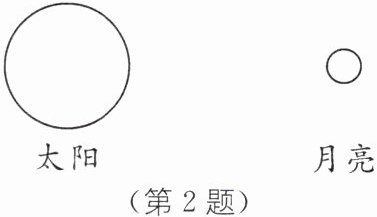 2. 日食与月食都是重要的天象,产生日食的原因是月亮在太阳与地球之间,由于光的直线传播,地球上特定区域的人们就有可能看到日食。请根据光的直线传播原理,画出图中可能看到日全食的大致区域。