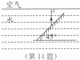 14. (2023·广西中考)如图所示是经平面镜反射后的反射光线,请画出射向平面镜的入射光线和进入空气中的折射光线。