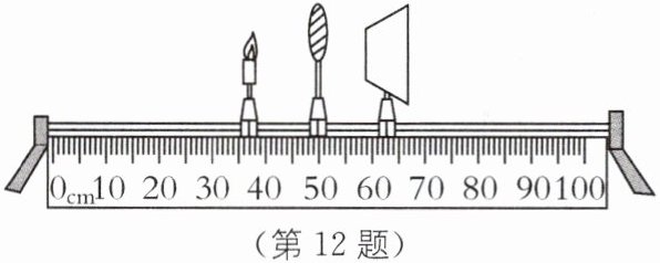 12. 小明同学利用如图所示的实验装置探究凸透镜成像的规律,该凸透镜的焦距为 10 cm,实验时凸透镜安装在光具座上 50 cm 刻度线的位置不再改变.