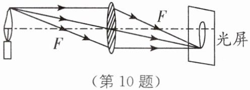10.D [解析]在光屏上得到了一个清晰的烛焰的像,说明是实像,根据凸透镜在成实像时,物距变小,像距变大,像就变大,将蜡烛适当靠近透镜,光屏适当远离透镜,才能使得光屏上清晰的像变大些.