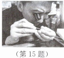15. (2024·包头中考)工匠师维护精密仪表时,在眼睛前戴一个凸透镜,便于观察仪表的细微之处,如图所示.