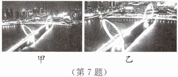 7. (2025·南京秦淮区期末)小明用数码相机(焦距不变)先后拍摄了"南京眼"的两张照片,如图甲、乙所示,结合图片分析,下列说法正确的是(