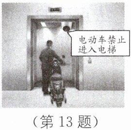 13. 新情境 电梯摄像头的成像与智能识别 (2024·常州中考)《重庆市消防条例》规定:2023年7月1日起,禁止携带电动自行车或其电池进入电梯轿厢,一旦有人违规操作,会被电梯内的摄像头拍摄成像并智能识别,电梯将停止运行并发出声、光警报,如图所示,某次警报时,摄像头凸透镜成像的像距为10.1 mm,则凸透镜的焦距可能为(