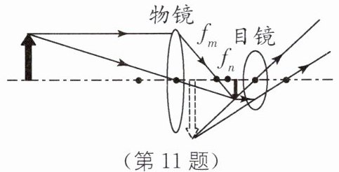 11. 为了观察太阳系内的各种行星,同学们在老师的指导下制作了开普勒望远镜,小滨制作的望远镜原理如图所示,该望远镜由两个凸透镜组成,物体经过两次折射成像.