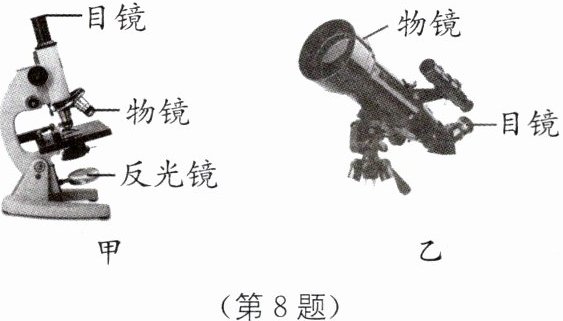 8. 如图所示的显微镜和望远镜用到了我们所学的很多光学知识.