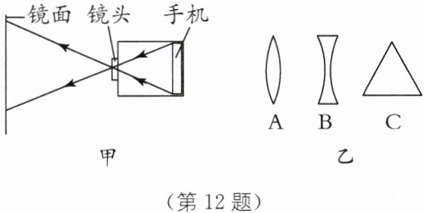 12. 图甲是小林同学设计制作的手机投影仪示意图,它可将手机画面放大投影到墙面上.