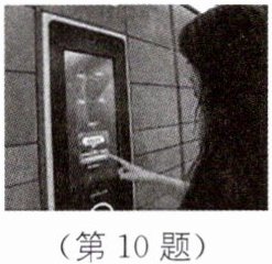 10. 新情境 刷脸储物柜 (2023·黄冈中考)如图所示是超市安装的一种刷脸自助储物柜.某顾客站在屏幕前50 cm处,按下"存"按钮,屏幕上方的摄像头启动,出现人脸缩小的像,柜门打开.下列说法正确的是(