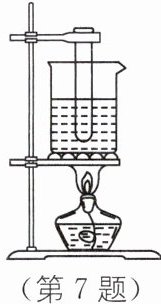 7. (2023·凉山州中考)如图所示,烧杯里装着水,试管中装着酒精,标准大气压下酒精的沸点为 78°C,给烧杯加热使水沸腾,继续加热,则试管中的酒精(