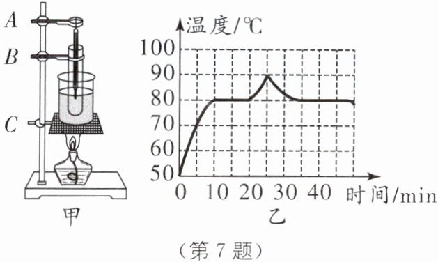 7. 如图甲所示是观察物质熔化和凝固现象的实验装置,如图乙所示是根据实验数据绘制的温度随时间变化的图像.