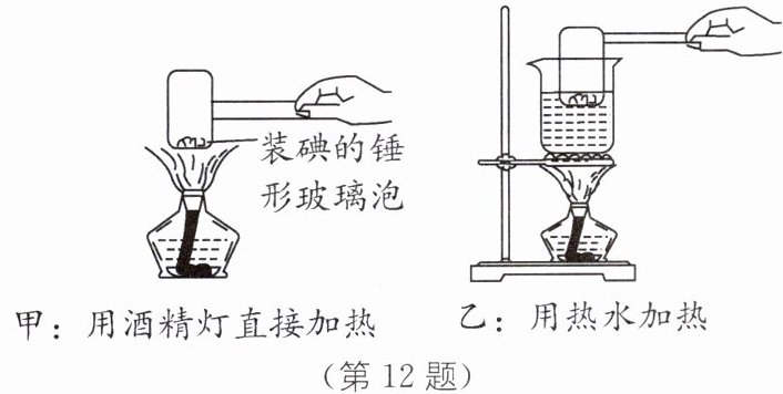 12. 观察法 (2024·宿迁经开区期末)小明在探究物态变化的实验中,设计了如图甲、乙所示的两种探究"碘的升华"的实验方案.