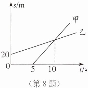 9. 如图所示,图甲是小车甲运动的 s-t 图像,图乙是小车乙运动的 v-t 图像,由图像可知,甲车速度