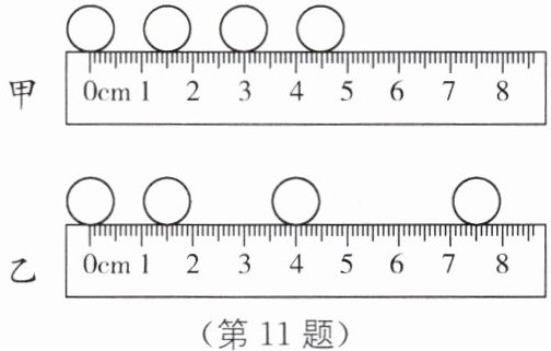 11. 频闪拍摄是研究物体运动的方式之一. 如图所示是小亮同学用频闪照相机记录的甲、乙两物体在相隔相同时间内运动到的不同位置,则______