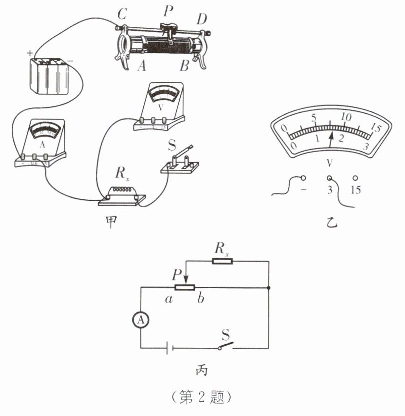 (3)重新正确连接电路后,闭合开关S,当滑片P移动到某一个位置时,电流表的示数为0.16 A,电压表的示数如图乙所示,则待测电阻$R_{x}= $______.