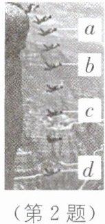 2. (2024·常州期中改编)如图所示是每0.3 s拍摄一次的频闪照片,它记录了极限跳伞运动员从悬崖跳下到打开降落伞之前的运动过程.若空气阻力忽略不计,在ab段运动员所受重力做功为$W_{1}$,做功功率为$P_{1}$;在cd段重力做功为$W_{2}$,做功功率为$P_{2}$,下列判断正确的是(