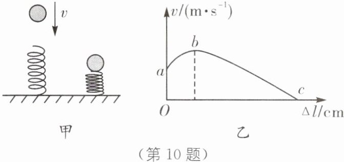 10. 如图甲所示,小球从高处自由下落到弹簧上.如图乙所示为从小球刚接触弹簧到将弹簧压缩到最短的过程中,小球的速度v和弹簧被压缩的长度$\Delta l$之间的关系曲线,其中b为曲线最高点.不计空气阻力,弹簧在整个过程中始终发生弹性形变,从球接触弹簧开始,下列说法正确的是(