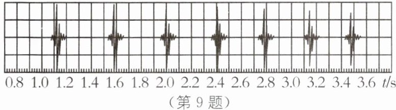 9. 新情境 利用手机APP记录实验现象 一小球从某高度由静止释放后,利用安装在手机中具有录音和显示声音波形的APP(软件)记录小球碰撞地面发出的声音随时间变化的波形,如图所示.则小球(