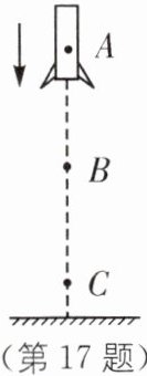 17. (2024·镇江中考)如图所示,某种可重复使用火箭在降落过程中,通过控制推力,沿竖直方向先从A点减速运动到B点,再从B点匀速运动到C点,且AB= BC,不计运动过程中的空气阻力,忽略火箭质量的变化,则(