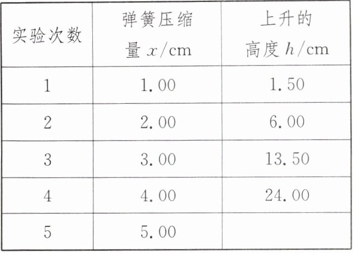cm.|实验次数|弹簧压缩量x/cm|上升的高度h/cm|