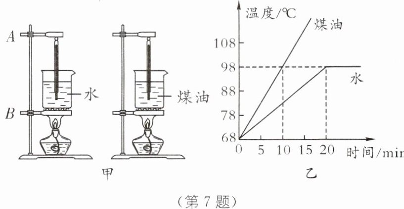 7. 控制变量法 (2025·柳州鱼峰区模拟)小柳用两个相同的酒精灯分别给水和煤油加热,如图甲所示,比较水和煤油的吸热能力的强弱.