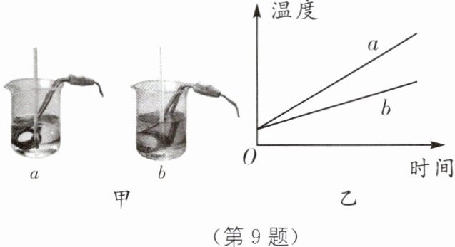 9.(2024·湖北中考)如图甲所示,利用相同规格的加热器加热等质量的a、b两种液体,得到温度随时间变化的图像如图乙所示,分析可知(