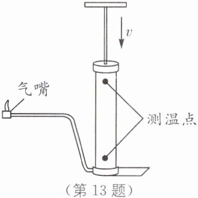 13. 小明发现篮球的气压不足,于是用打气筒给篮球打气.在收起打气筒时发现外壁有些发热.于是他想,是什么原因导致打气筒的外壁发热呢?小明就这个问题与同学小红进行了交流,联系所学物理知识,他们提出了以下两个猜想: