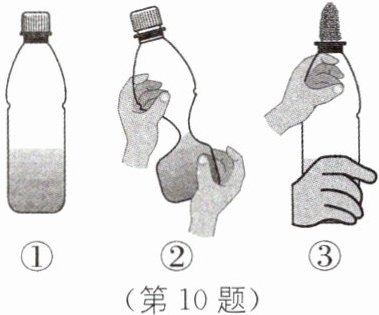 10. (2023·南京鼓楼区期中)用塑料瓶做了如图所示的实验:①瓶中有少量水,盖紧瓶盖;②用力扭转瓶身;③松动瓶盖,瓶盖冲出,瓶内出现白雾,下列说法正确的是(