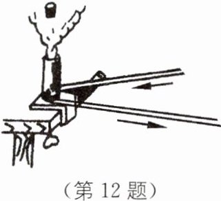 12. 如图所示,把一个底端密闭的薄壁金属管固定在桌上,管里装有一些酒精,管口用塞子塞紧,用绳子在管外绕几圈,并迅速地来回拉动,一会看到塞子被弹起.
