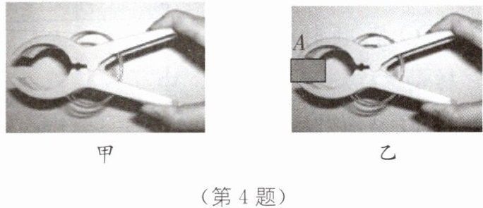 4. 如图甲所示是生活中常用的夹子,拇指对夹子施加压力$F_{1}$使夹子缓慢张开,夹子上的钢丝对夹子的弹力为$F_{2}$,则$F_{1}$