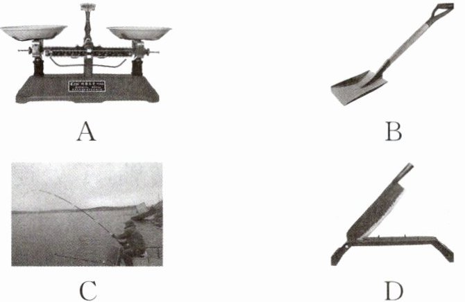 D [解析]"只要给我一个支点和一根足够长的杠杆,我就能撬动整个地球”说的是一个省力杠杆。天平在使用过程中,动力臂等于阻力臂,是等臂杠杆,不省力也不费力,故A错误;铁锹在使用过程中,动力臂小于阻力臂,是费力杠杆,故B错误;钓鱼竿在使用过程中,动力臂小于阻力臂,是费力杠杆,故C错误;铡刀在使用过程中,动力臂大于阻力臂,是省力杠杆,故D正确。