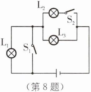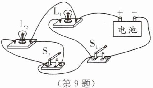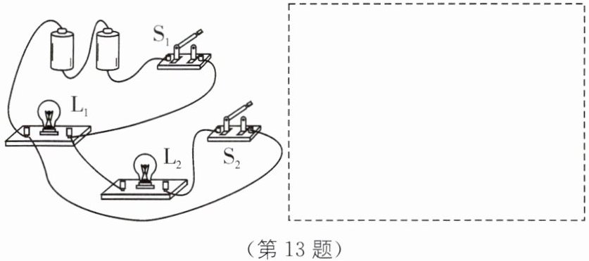 [解析]由实物图可知,电流由电源的正极开始出发,分为两条支路,一条支路只有L₁,另一条支路经过S₂、L₂,汇合后经过S₁,最后回到电源负极,电路图如答图所示.