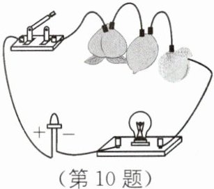 10.(2024·武汉武昌区模拟)如图所示是由一个小灯泡、一个LED(发光二极管)、水果电池、一个开关组成的电路.闭合开关,小灯泡和LED都发光.则对应的电路图为(