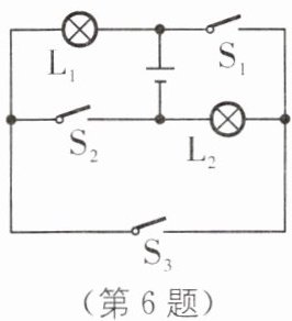 6. 如图所示的电路中,要使灯$L_{1}$、$L_{2}$串联,应只闭合的开关是