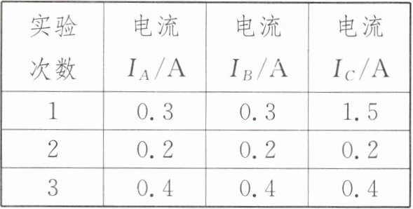 |实验次数|I_{A}/A|I_{B}/A|I_{C}/A|