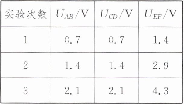 |实验次数|U_{AB}/V|U_{CD}/V|U_{EF}/V|