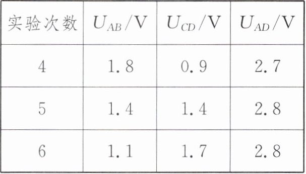 |实验次数|U_{AB}/V|U_{CD}/V|U_{AD}/V|
