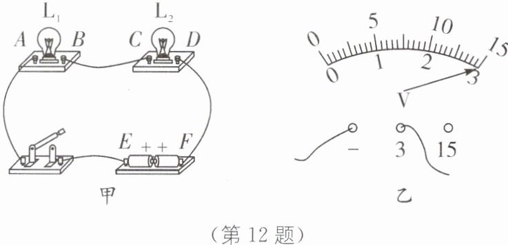 (2)正确安装后,闭合开关,两灯均不发光,小明用电压表试接A、B接线柱,发现指针偏转情况如图乙所示,则可判断