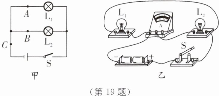(1)如题图乙所示,两个支路一条是L₁单独接入,另一条支路是L₂和电流表,所以电流表测量L₂的电流.