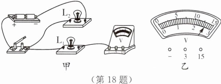 18. 为探究并联电路中电压的规律,实验室提供的器材有干电池组(电压约为3V且保持不变)、电压表、多个小灯泡、开关、导线若干.