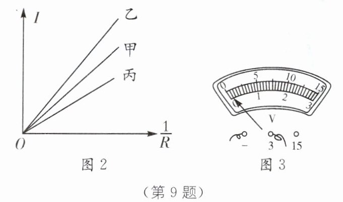 故障,故障排除后,移动滑片,使电压表示数为2V,记录电流表示数,多次更换定值电阻重复实验,得到电流I与定值电阻R的倒数关系如图2中图线甲所示,从而得出结论.(4)实验结束后,小明应先断开开关,再拆除