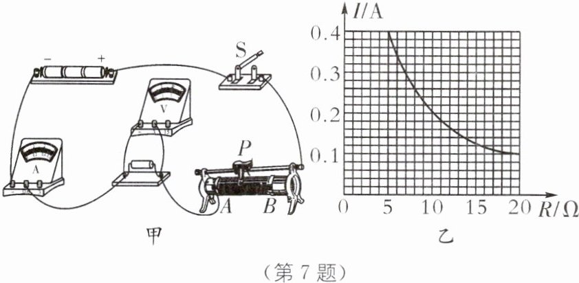 7.(2024·广安中考)小华和同学们进行了“探究电流与电阻的关系”实验.实验器材有:三节干电池(每节恒为1.5V)、电流表一只、电压表一只、滑动变阻器两个(分别标有“20Ω,2A”“40Ω,1A”字样)、定值电阻4个(5Ω、10Ω、15Ω、20Ω)、开关一个、导线若干.他们利用这些器材设计了如图甲所示的电路.