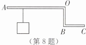 8. 如图所示的轻质杠杆AOBC可绕O点转动,OA之间挂一重物,请作出使杠杆在图中平衡的最小力$F_{1}和阻力F_{2}$的示意图.