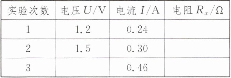 |实验次数|电压U/V|电流I/A|电阻$R_{x}/$Ω|