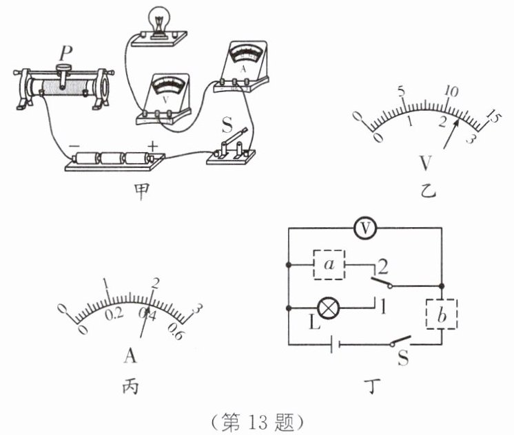 ②将单刀双掷开关掷于位置2,保持b处电阻不变,调整a处电阻,使电压表示数为______V,此时电阻箱的示数即为小灯泡正常工作时的电阻.电阻箱应接在图丁中的______(填“a”或“b”).