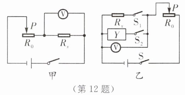 .(3)若实验要求增加一个电学器材,实现$R_{x}$阻值的直接读取,且电路只能连接一次,小文重新设计了如图乙所示的电路,增加了一个阻值可连续调节且可读数的变阻器Y.实验步骤如下: