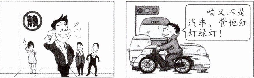 (1)问,需要读懂两幅漫画,特别是漫画中的文字不可忽视,显然两幅漫画分别表明公共场所秩序、交通秩序需要加强。第